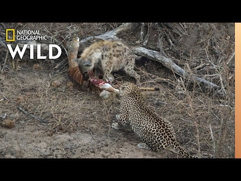 ヒョウにも奪われてしまいます。がんばれハイエナ!